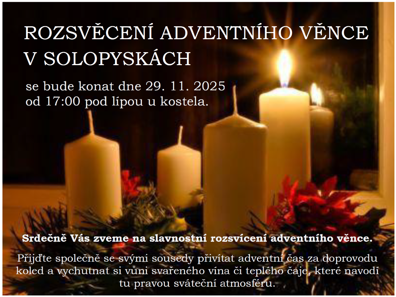 Již tradičně jsme 1.1. ve 13:00 h. vyrazili na novoroční procházku po okolí Solopysk. Trasa vedla přes vrcha, studánku, křížek a Kunvald zpět do Solopysk. U studánky jsme přivítali Nový rok přípitkem. Děkujeme.